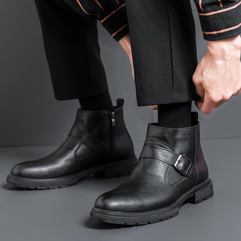 Черные повседневные мужские ботинки Универсальный стиль для осени и зимы Отдых на открытом воздухе деловая вечеринка Повседневная взрослая кожаная обувь Горячие