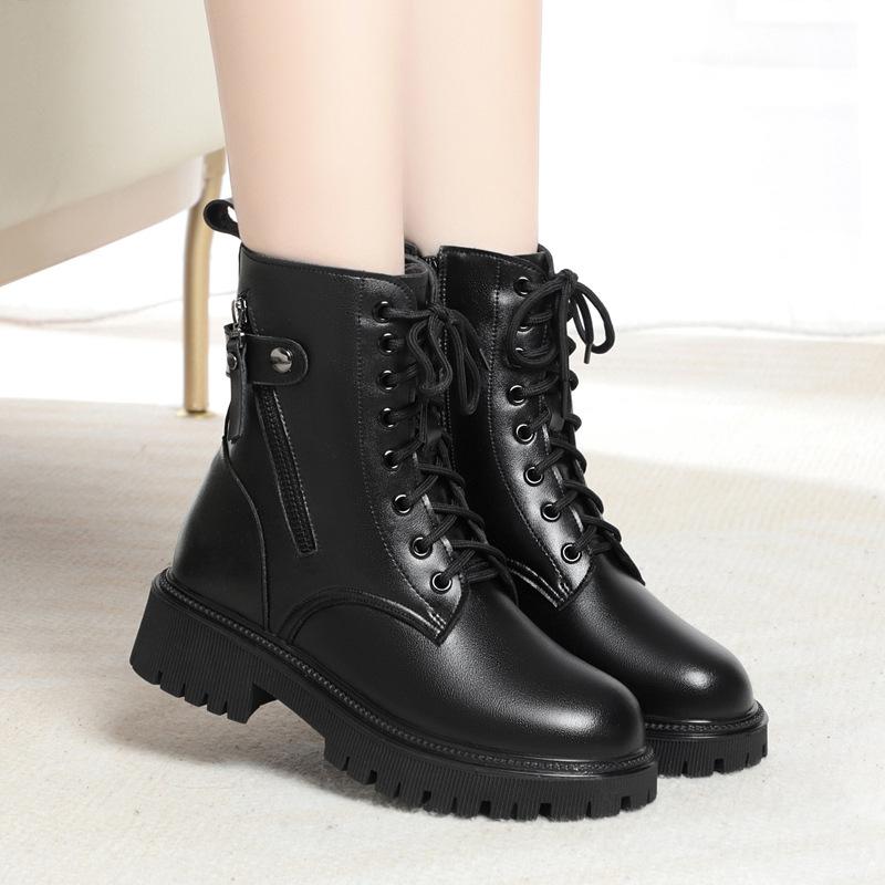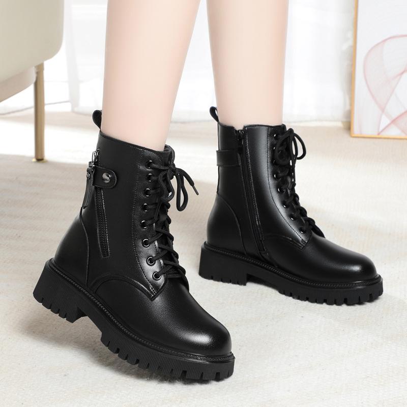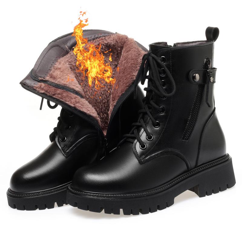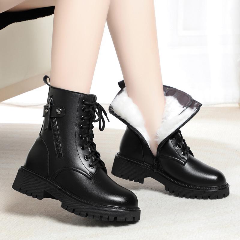Женские женские ботильоны из натуральной кожи, шерстяные зимние ботинки на платформе, осенне-зимняя теплая обувь с плюшевым мехом, размер на шнуровке 35-43