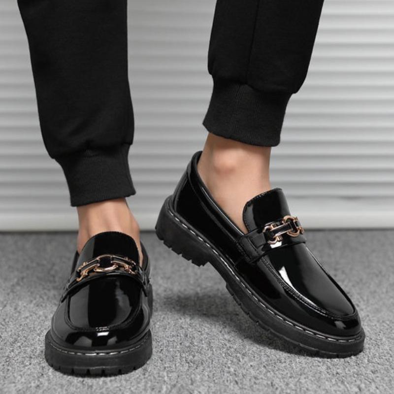 Slip-on Male Casual Shoe Round Toe Black Retro Comfortable Cowhide Social Sale Luxury Classic Original Pu Men's Leather Shoes