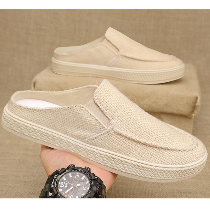 2025 Мужские парусиновые шлепанцы без задника Beijing Heritage с многослойной подошвой, повседневная обувь, дышащая летняя уличная обувь для модных мужчин