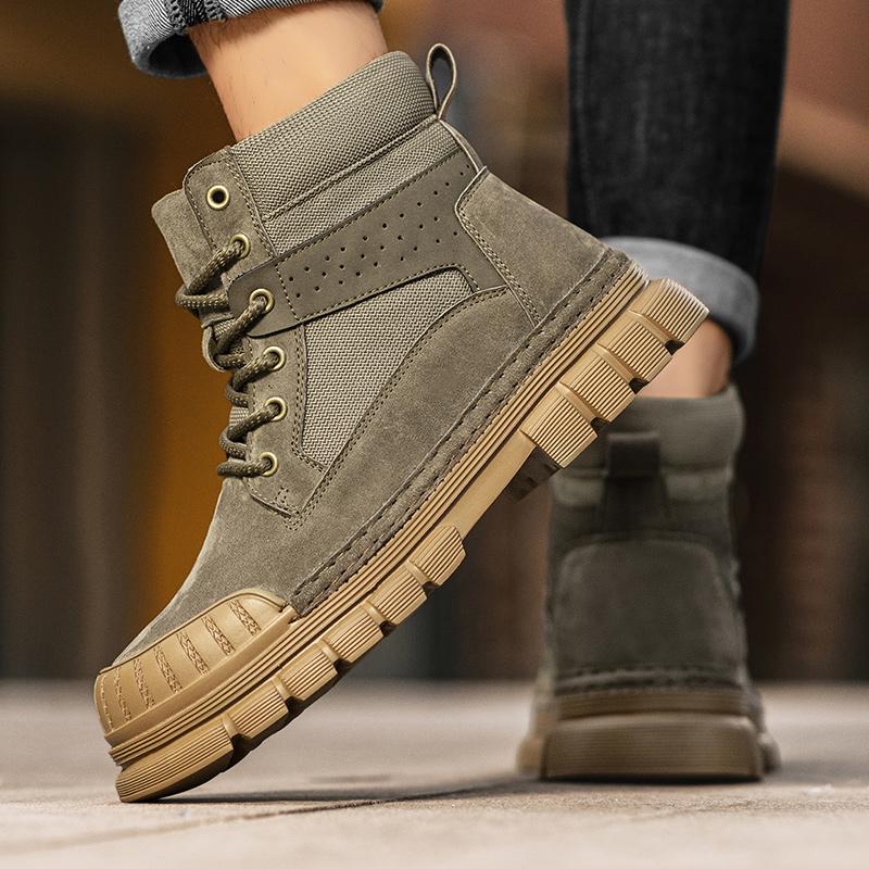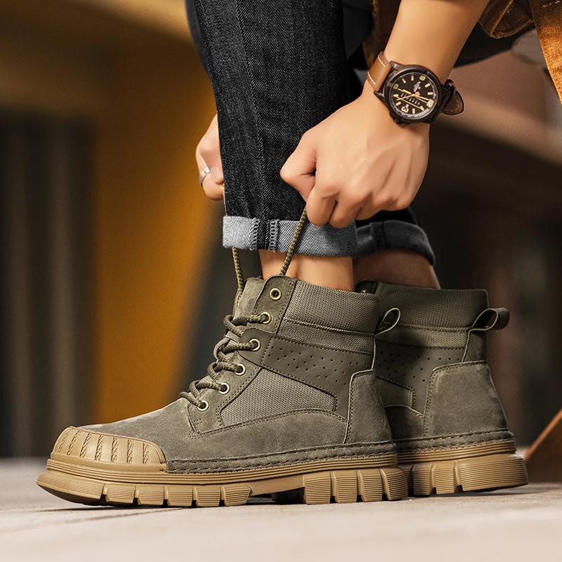Осенние мужские мотоботы Бренд Мужские Новинка Ботинки для ходьбы Зимние мужские ботильоны На шнуровке Уличные кожаные кроссовки