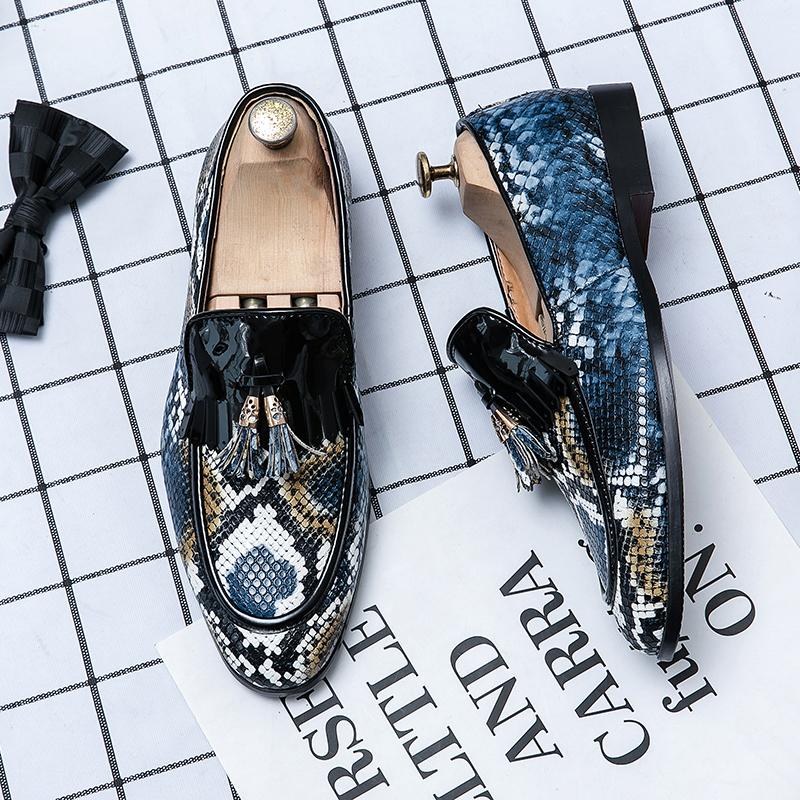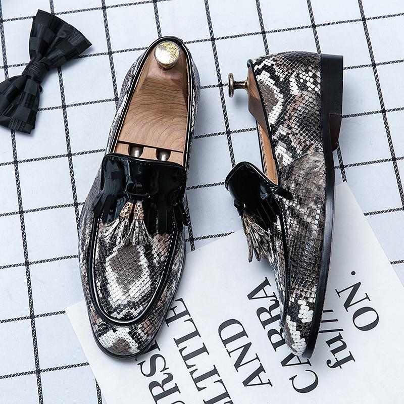 Мужские повседневные кожаные туфли с узором змеиной кожи, новинка весны, мужские удобные кожаные туфли с острым носком для банкета