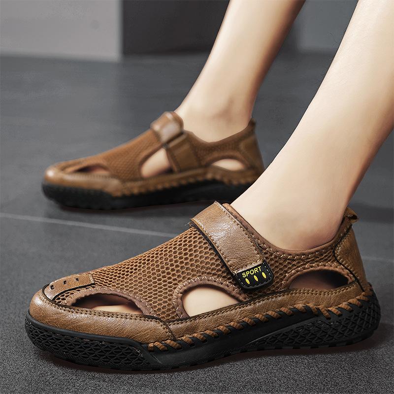 Мужские дышащие летние сандалии ручной работы с перфорацией, размеры 45 46, пляжная/уличная обувь, нескользящие, с закрытым носком, модная сетчатая повседневная обувь