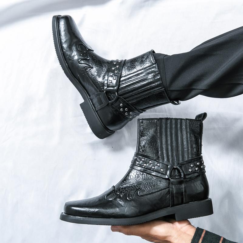 Высококачественные мужские ботинки из коровьей кожи, удобные, с высоким голенищем, модные, осенние, из крокодиловой кожи, с заклепками, мужские ботинки средней высоты