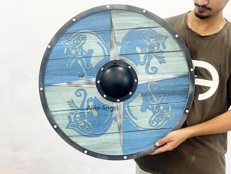 Wooden Viking Dragon Shield: Norse Decor, Cosplay Prop