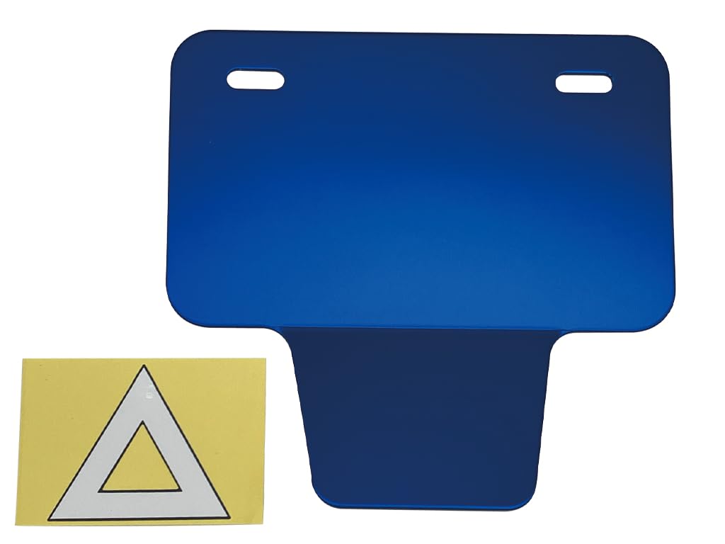Cf Posh 204041 Small Corner License Plate Holder for 50-125cc with Triangle Sticker Blue