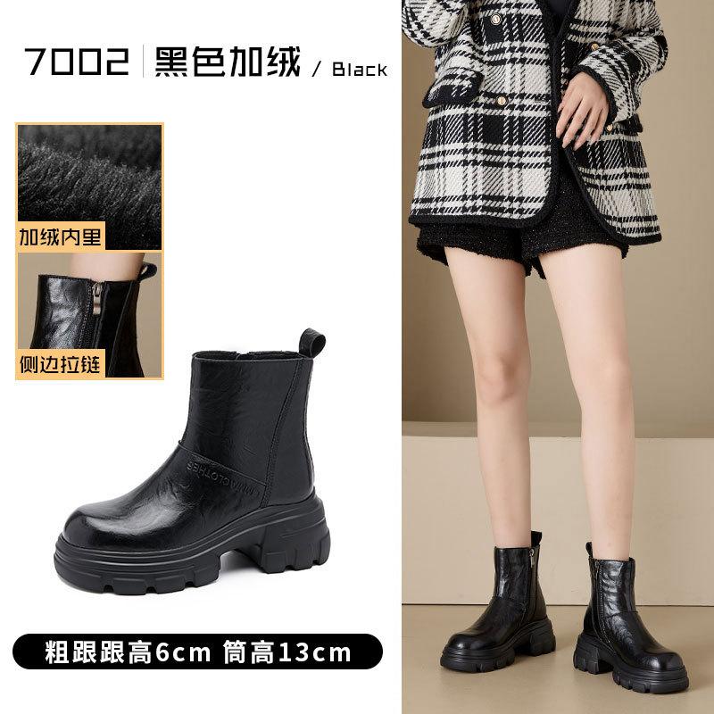 2025 осень и зима платформа кожаные ботинки Мартин женские универсальные британский стиль тонкие ботинки круглый носок высокий каблук короткие ботинки