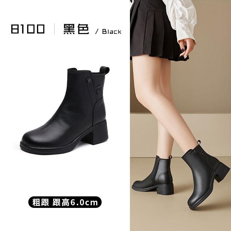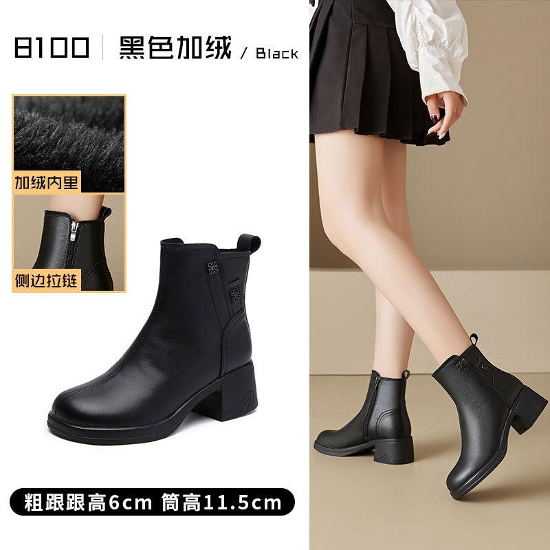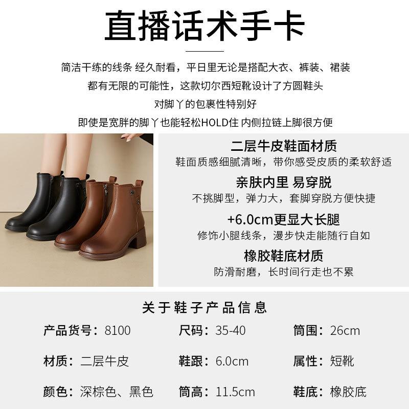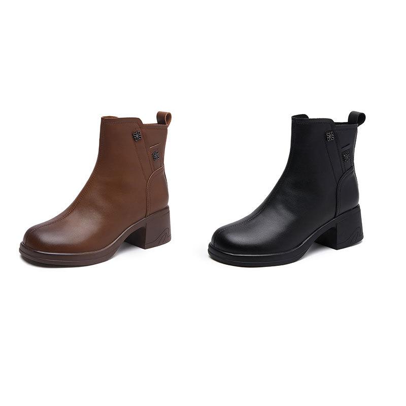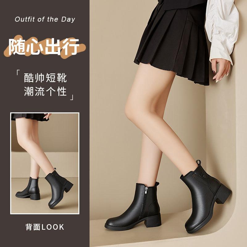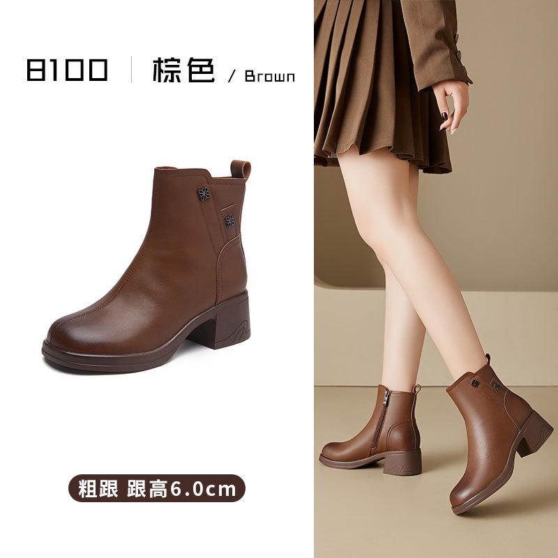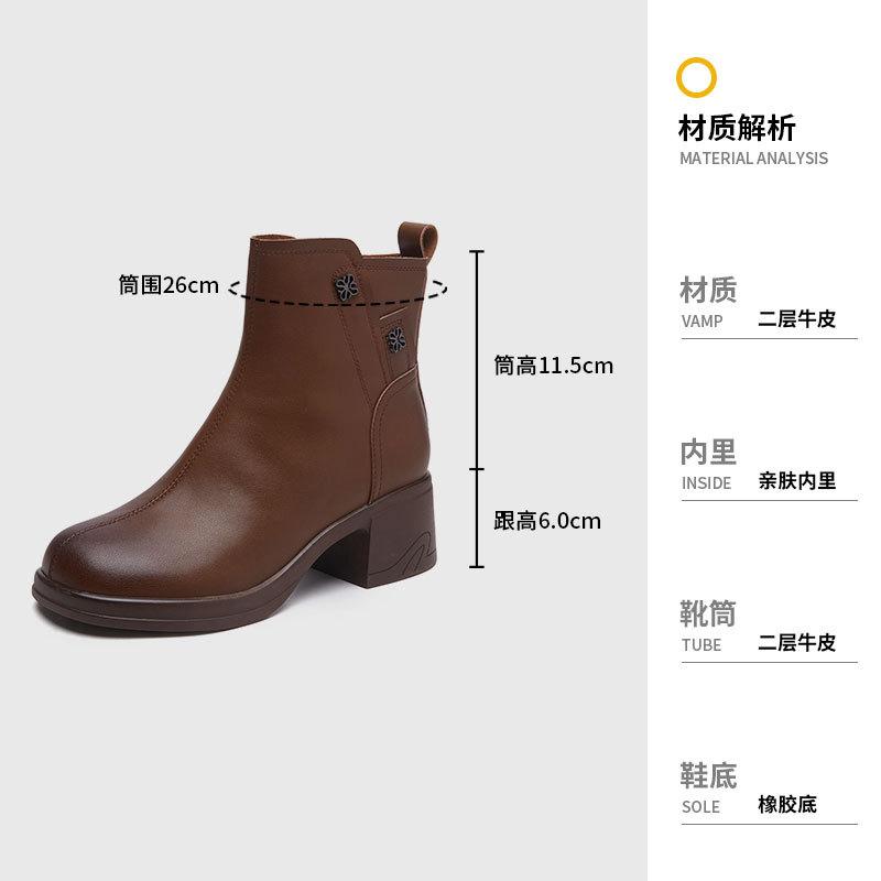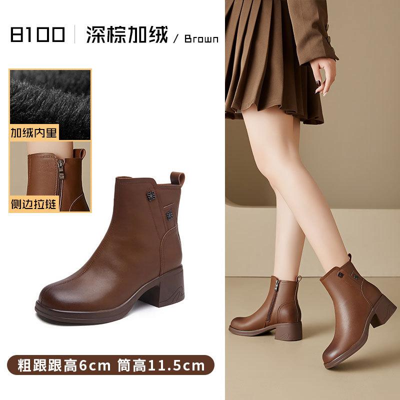 Осень и зима ретро толстый каблук кожаные ботинки Мартин женские универсальные повседневные тонкие коричневые ботинки круглый носок большой размер высокий каблук короткие ботинки
