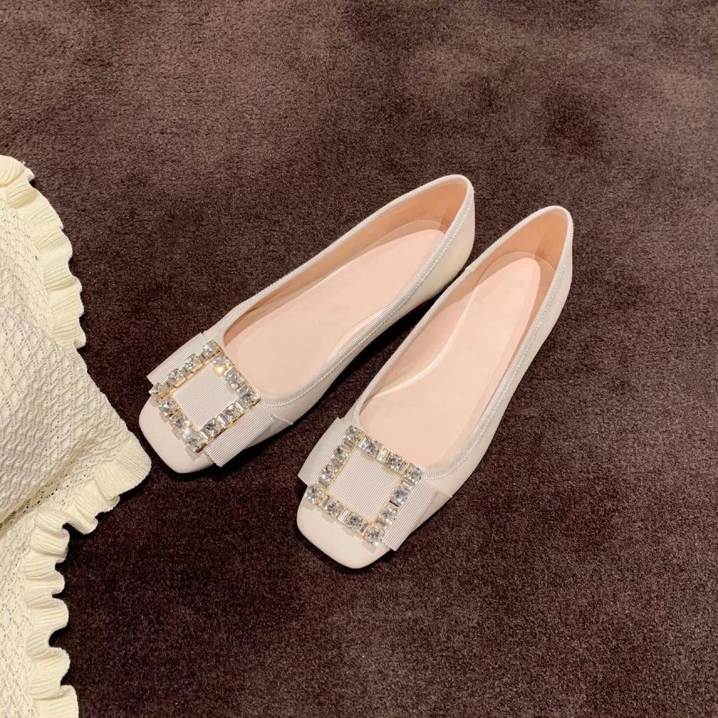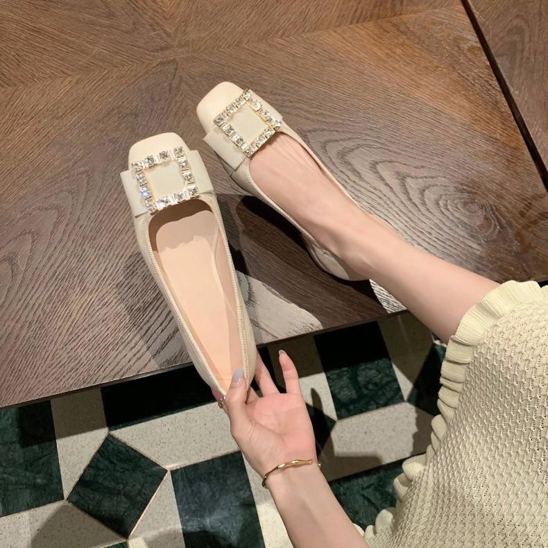 Версия из овчины~ Классический темперамент квадратная пряжка стразы повседневные универсальные одинарные туфли женские осенние кожаные балетки Мэри Джейн ladyshoes