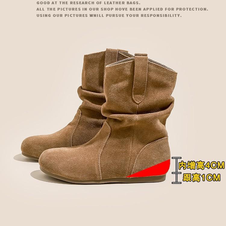 Blue Cabinet Edition~ Inner Height Increasing Retro Short Boots Women's 2025 Autumn and Winter Western Martin Boots Round Head Short Boken Stacking