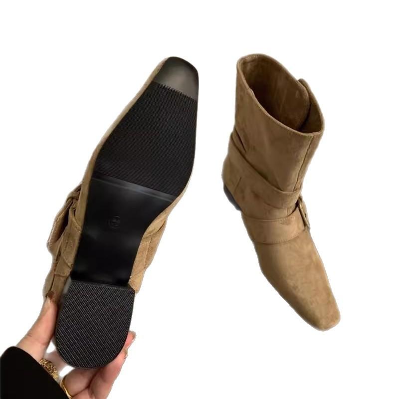 2025 корейская версия новых нишевых дизайнерских ретро французских коротких ботинок с маленьким квадратным носком, ковбойские ботинки, повседневные полусапожки, женские ботинки