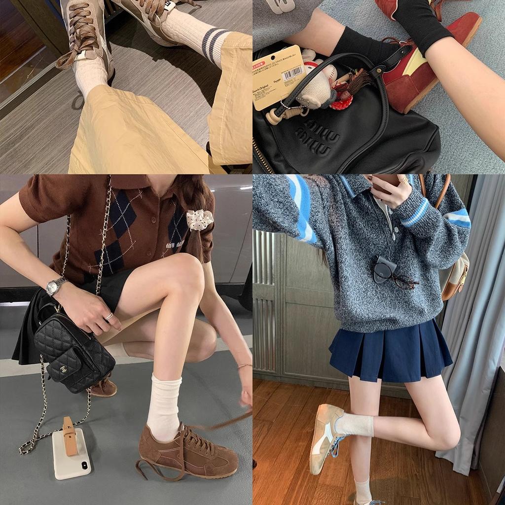Lan Cabinet 2025 осень и зима модные ретро контрастные цвета круглый квадратный носок повседневный стиль кроссовки Форреста Гампа ins женские новые