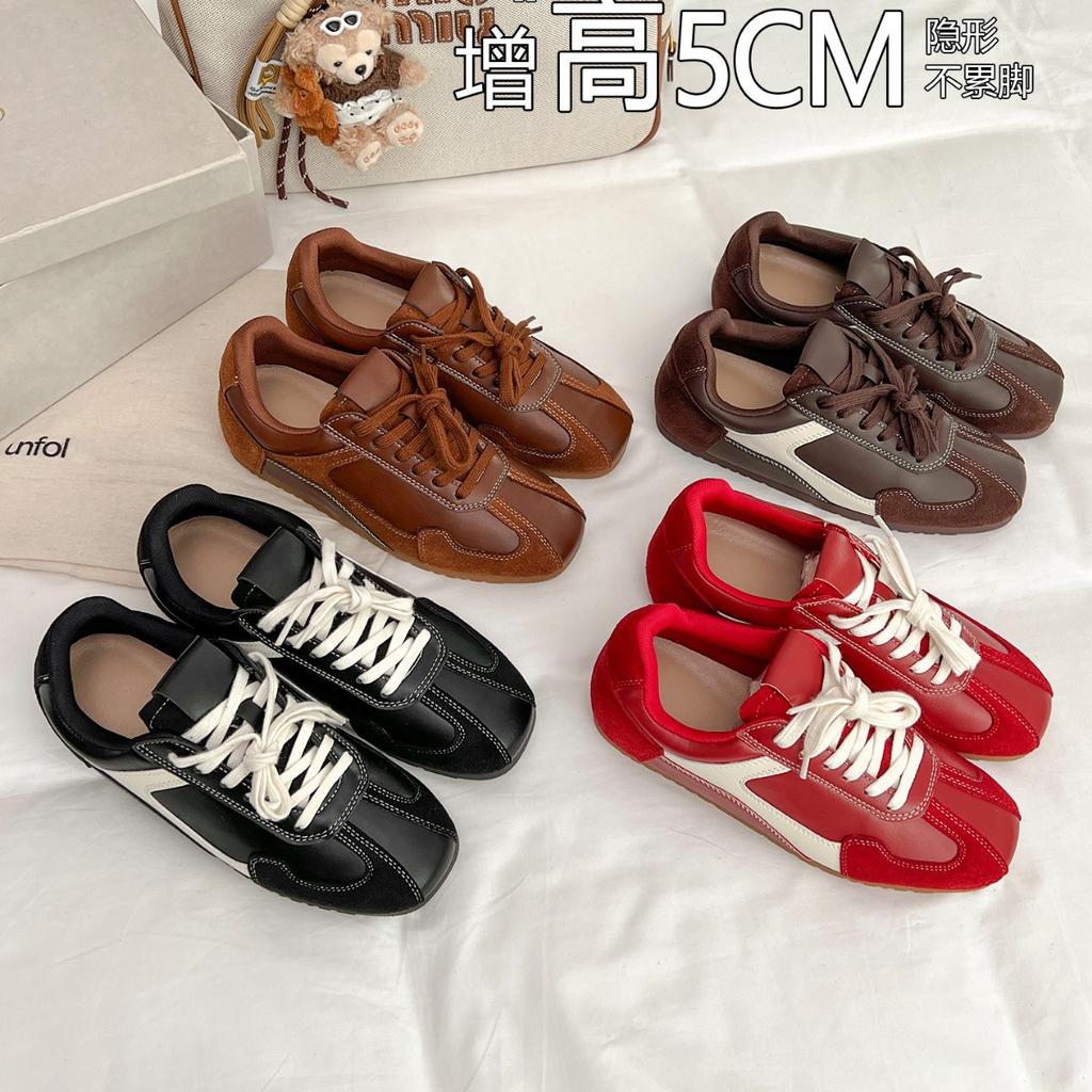 Lan Cabinet ретро круглый носок внутренняя высота увеличение плоская подошва немецкие тренировочные туфли женские 2025 новая мода универсальные и тонкие повседневные спортивные туфли