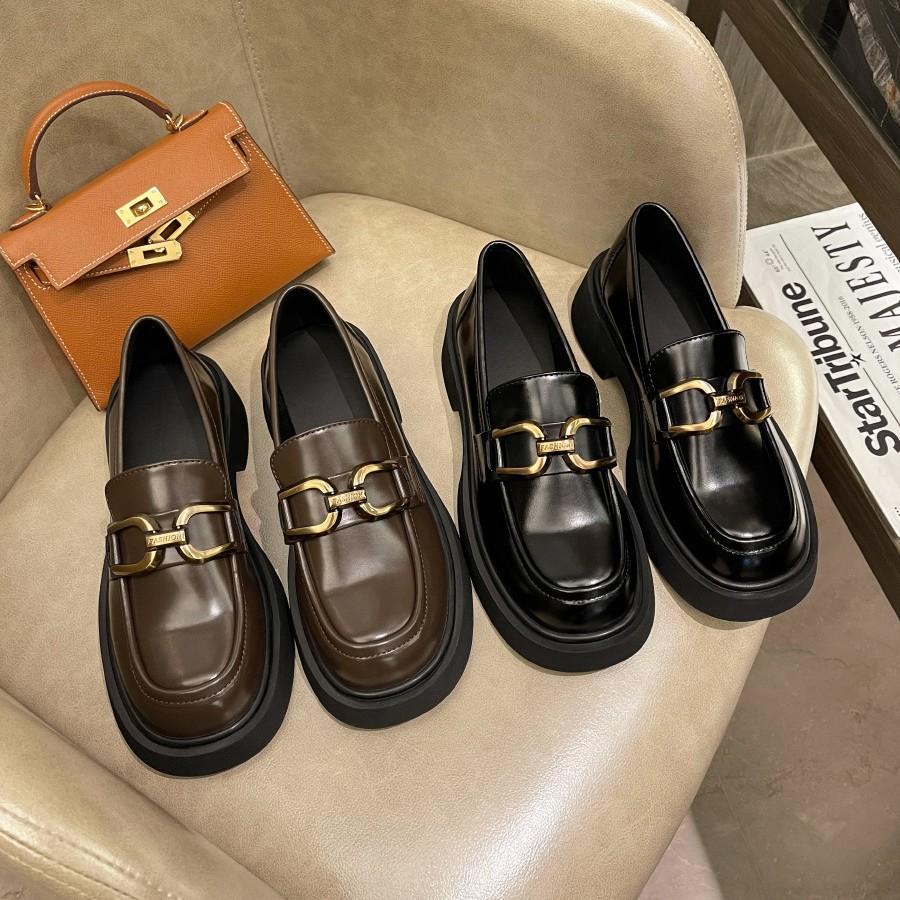 2025 новые осенне-зимние кожаные лоферы на платформе женские с круглым носком металлической пряжкой в британском стиле маленькие кожаные туфли Shilin