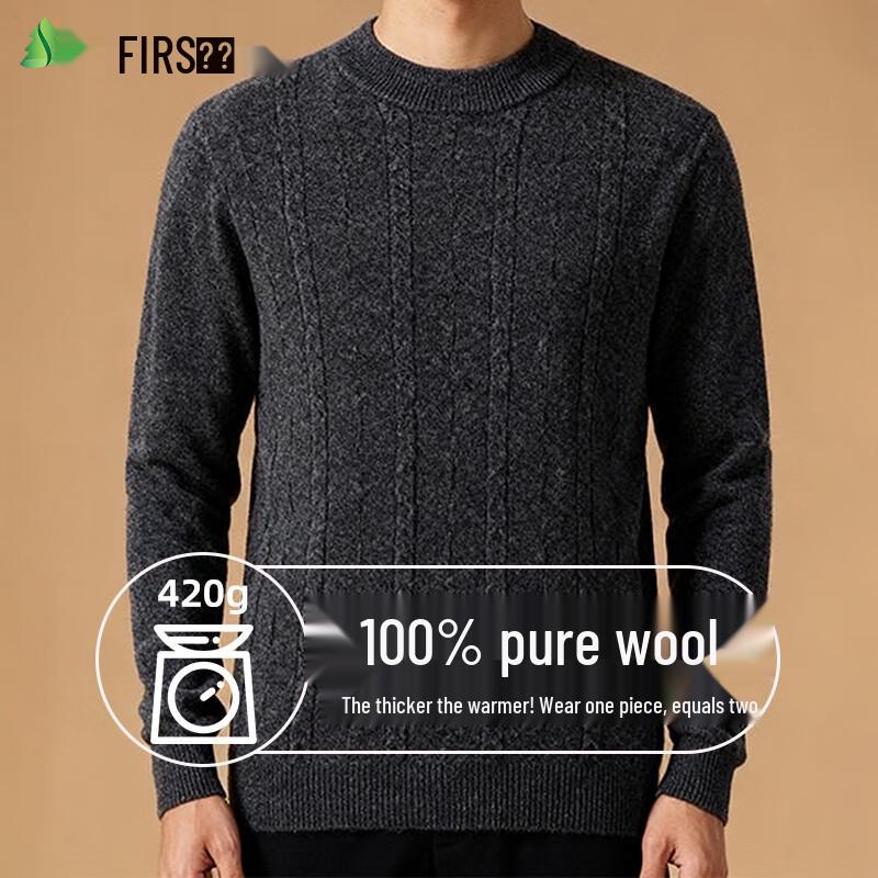 Shanshan Men's 100% Pure Wool Heavyweight Round Neck Sweater