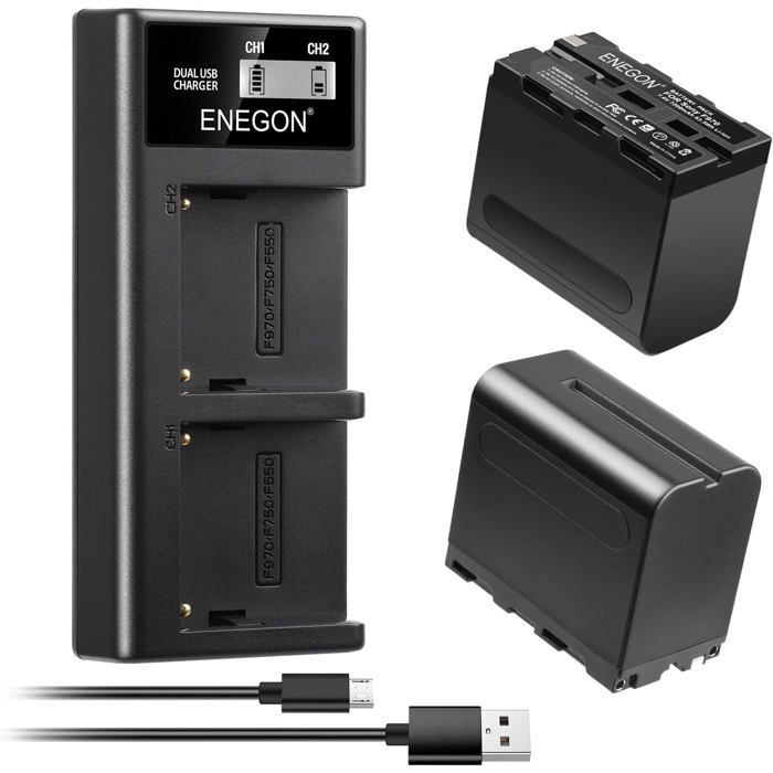 ENEGON Pack 2 Batteries NP-F970 8400mAh + Chargeur LCD pour Sony NP-F930/F950/F960 et Caméras CCD-SC55/TR516/TR716