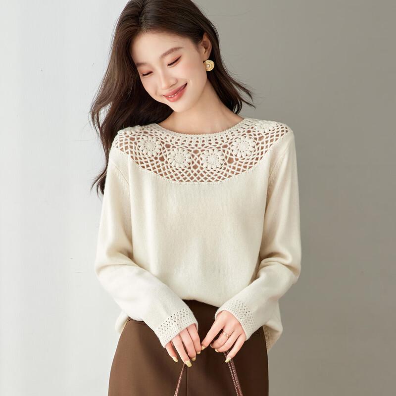 Srcr Women's 100% Merino Wool Hand-Crocheted Sweater