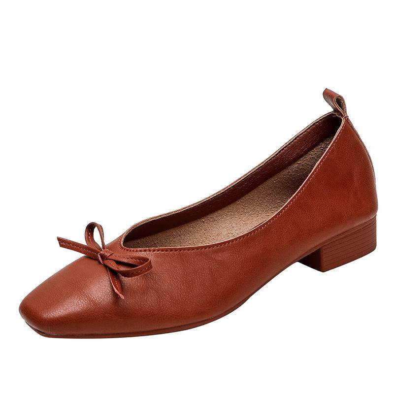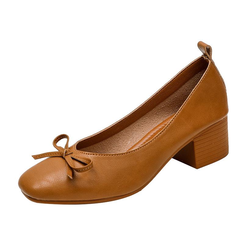Кожаные туфли-лодочки с V-образным вырезом, женские, на толстом каблуке, с квадратным носком, из мягкой кожи, на мягкой подошве, не утомляют ноги, с бантиком, в ретро стиле, для работы, с неглубоким вырезом, маленькие кожаные туфли