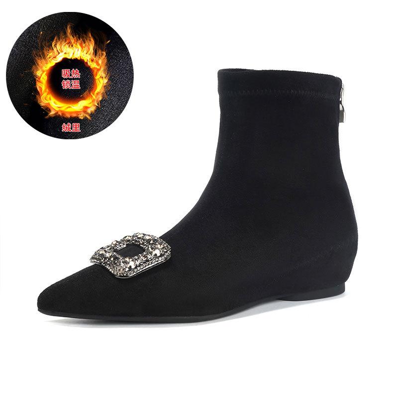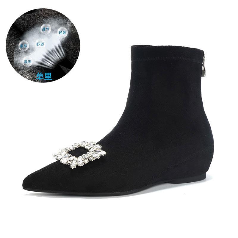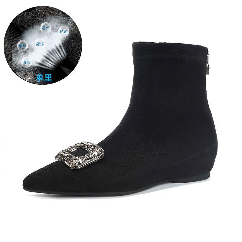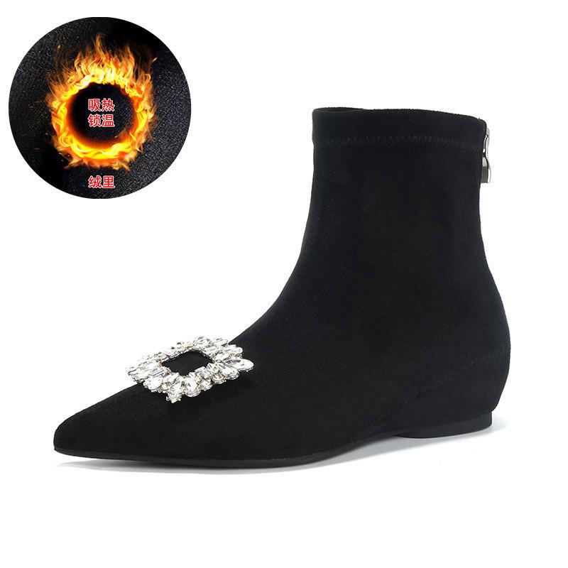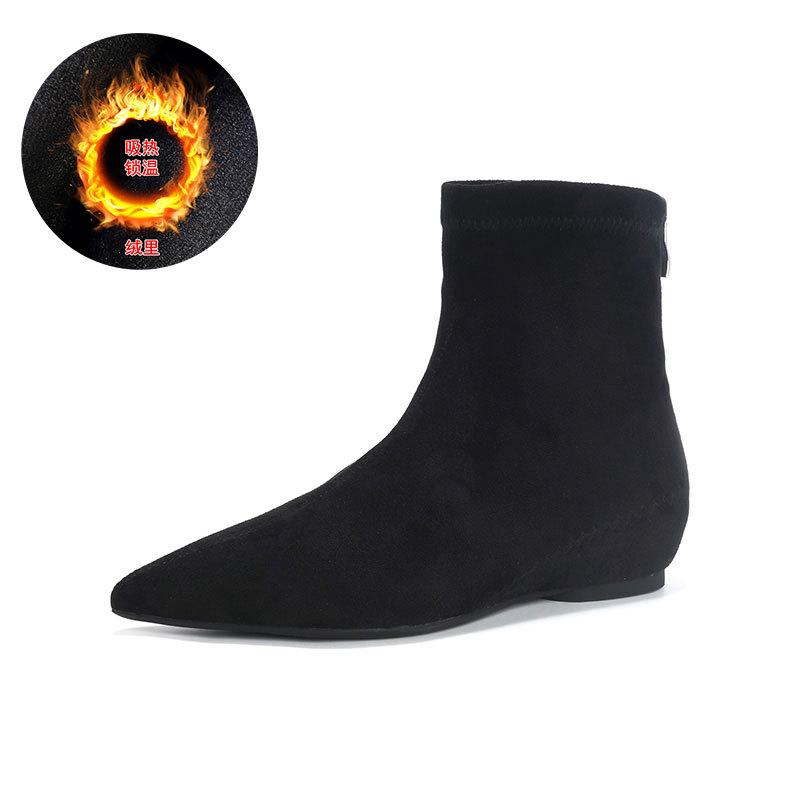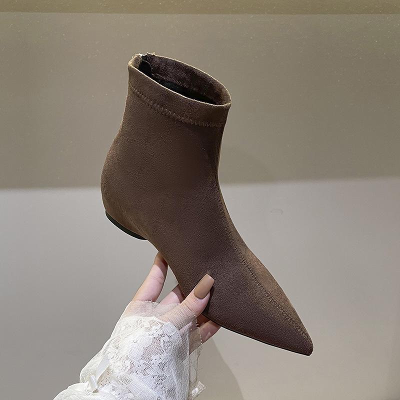 Сапоги-ботильоны на скрытой платформе, с острым носком, женские, осенне-зимние, новые, из замши, эластичные, французские, универсальные, маленькие, нюдовые