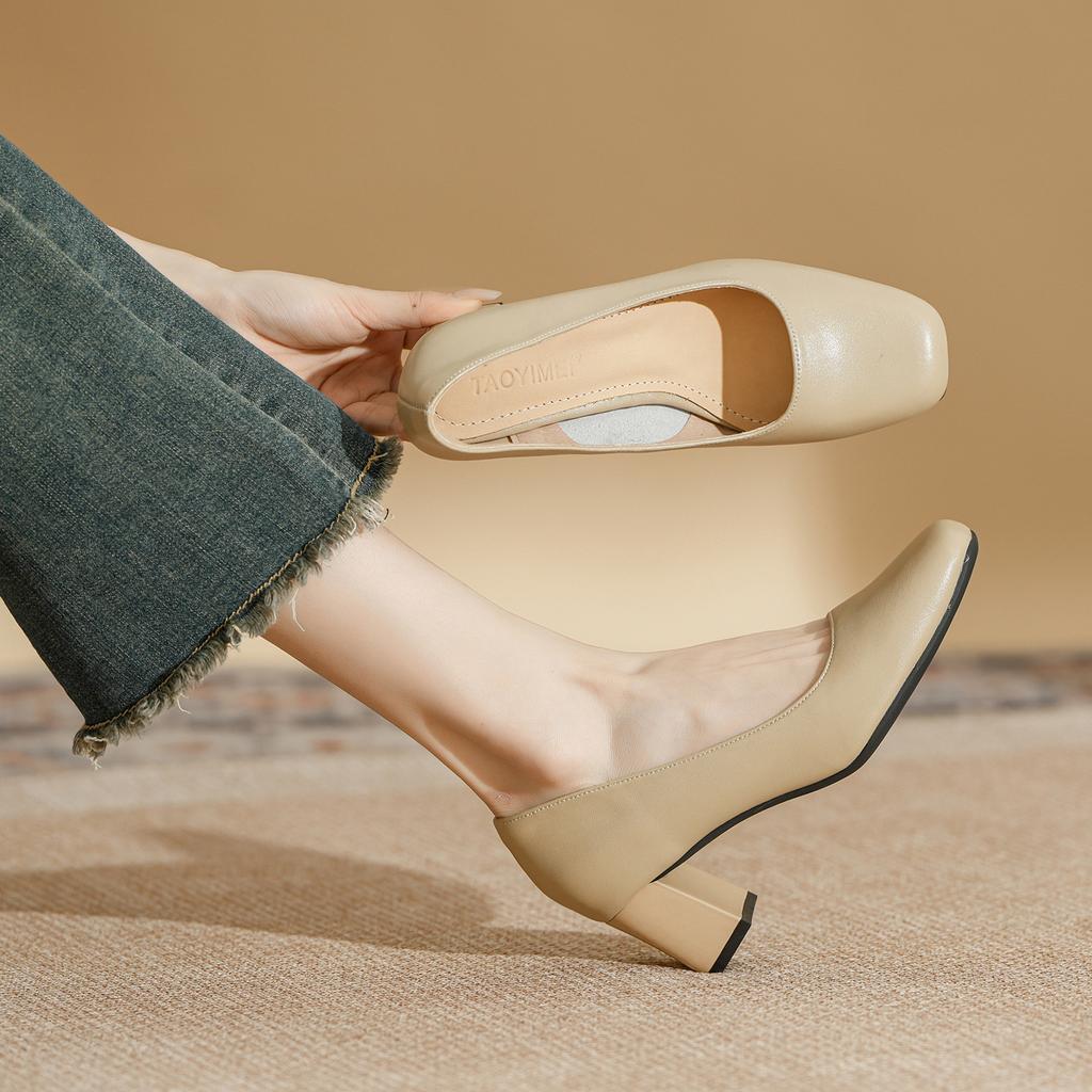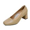 Кожаная версия толстый каблук не устают ноги для поездок на работу квадратный носок туфли женские весна и осень легкий вырез с юбкой низкий каблук средний каблук wo