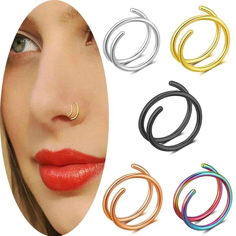 Модные аксессуары из нержавеющей стали Одинарный пирсинг Спиральное кольцо для носа Простая серьга для губы Многослойное двойное кольцо Кольцо-хуп для носа Подарки