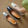 Кожаные туфли-лодочки на толстом каблуке 2025 новые универсальные фея ветер женские туфли с мелким вырезом на среднем каблуке размер женские туфли туфли бабушки универсальные