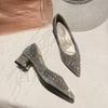 Остроносые туфли на плоской подошве женские 2025 лето новые с мелким вырезом со стразами темпераментные универсальные мягкая поверхность увеличение высоты удобные жом