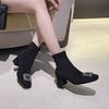 Замшевые узкие ботильоны на толстом каблуке, на среднем каблуке, короткие ботинки, женские осенне-зимние одинарные ботинки, со стразами, с квадратным носком, интернет-знаменитость, эластичный флис