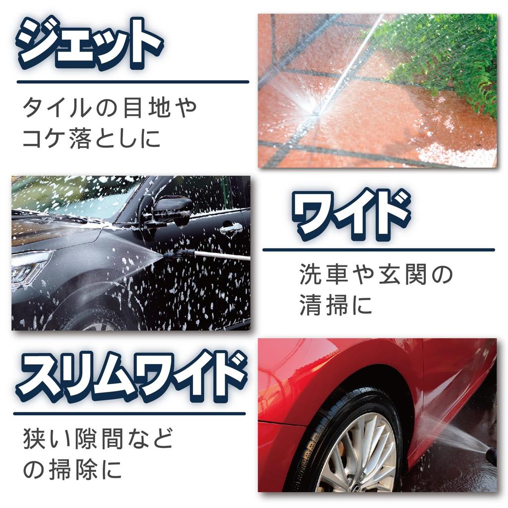 Green Life Super Jet Long Nozzle III SJN-80SL, Car Wash Cleaning Nozzle, 270-Degree Angle Adjustment, 3 Water Shapes, Black, 80cm Long