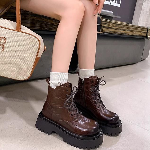 [Фанфна] Женские ботинки Мартина 2025 Новые Осень и Зима Британский Стиль Взрыв Увеличенная Толстая Подошва Универсальные Облегающие Короткие Ботинки