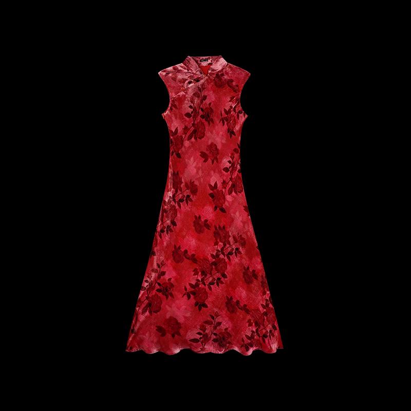 Heco Новое красное платье из шелкового бархата в китайском стиле