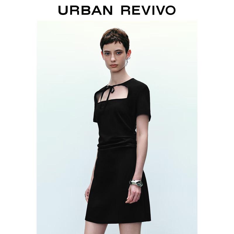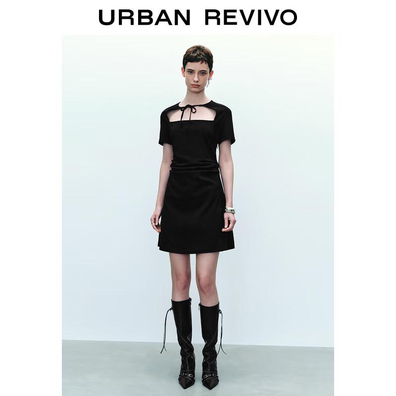 UR 2024 Летнее мини-платье в темном стиле с вырезами и плиссировкой