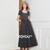 Платье миди А-силуэта с короткими рукавами и U-образным вырезом, двухцветное, имитация двух частей — купить товар онлайн с бесплатной доставкой по всему миру!