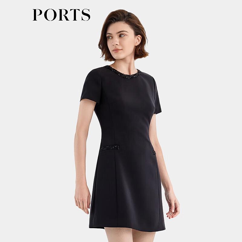 PORTS Женское платье А-силуэта с круглым вырезом и бисером YLT8D362NWQ062 — купить товар онлайн с бесплатной доставкой по всему миру!