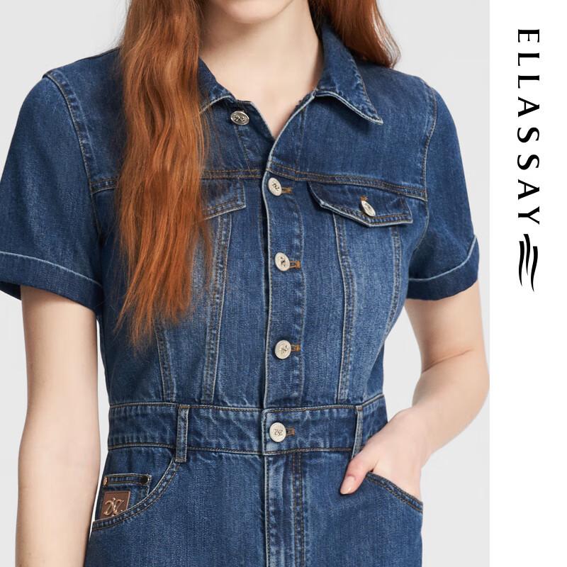 ELLASSAY Women's Summer Retro Cotton Blend Denim Shirt Dress
