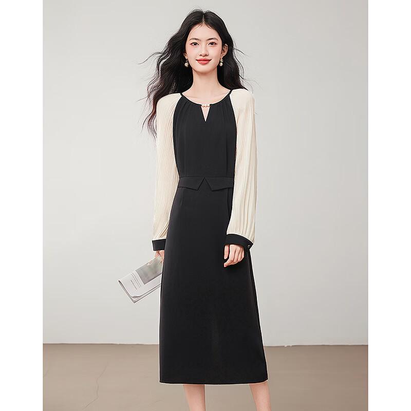 Elegant Beaded Round Neck Faux Two-Piece A-Line Dress
