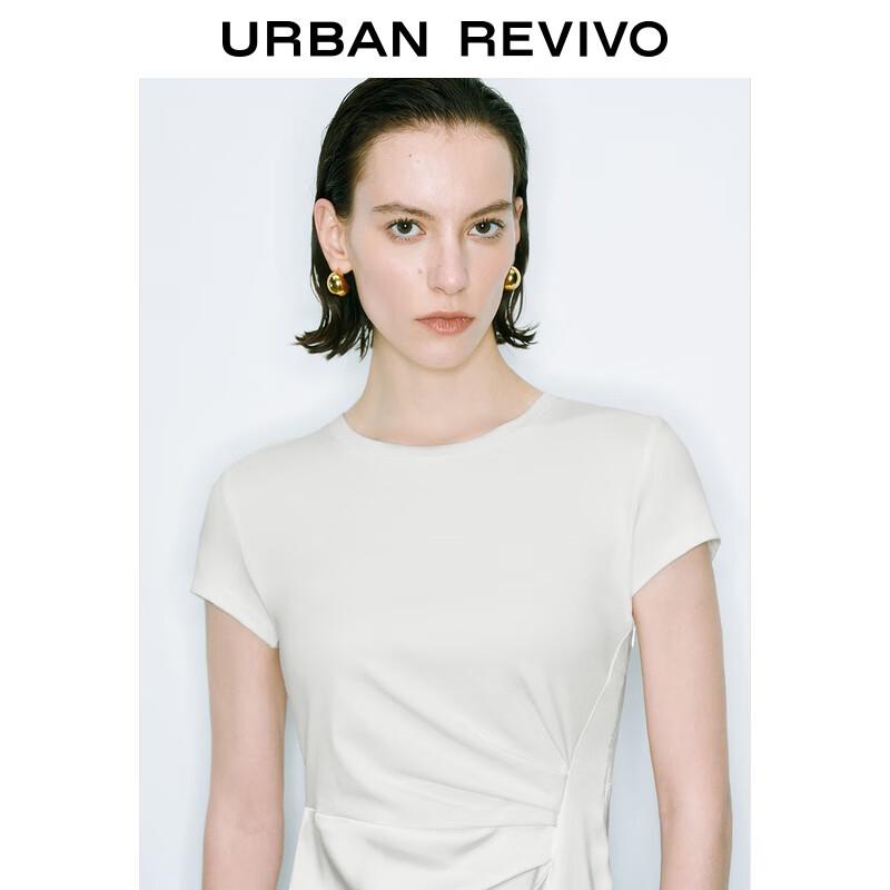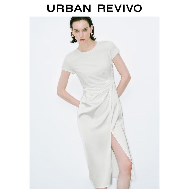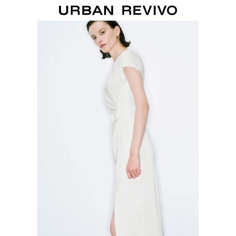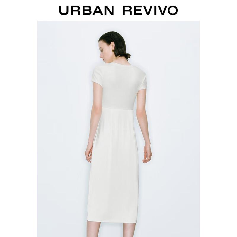 UR 2025 Summer Women's Pleated Slit Short-Sleeve Bodycon Dress