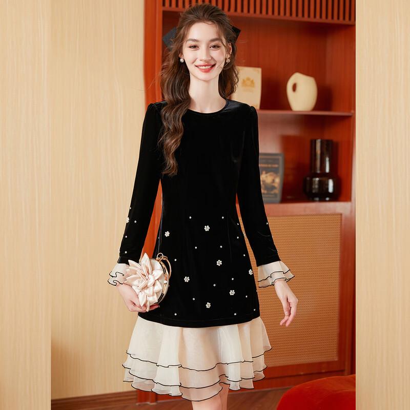 Элегантное бархатное миди-платье А-силуэта с бисером Bailuyu