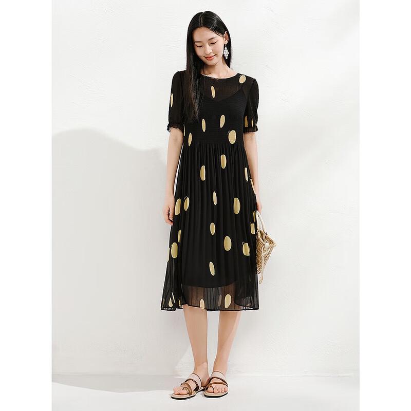 JUZI ANNACAU Элегантный двухпредметный комплект платья в горошек из искусственного шелка