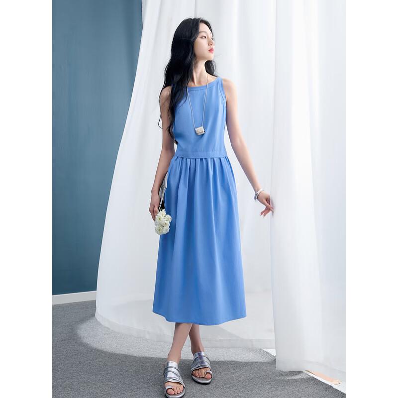 Sancai 2025 Осень Элегантное Макси-платье А-силуэта без рукавов
