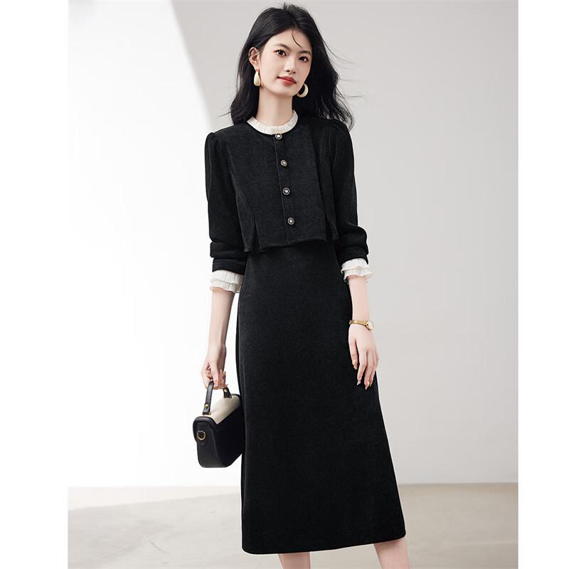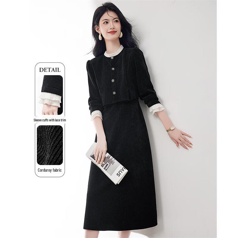 Маленькое вельветовое платье с имитацией двойки и длинными рукавами