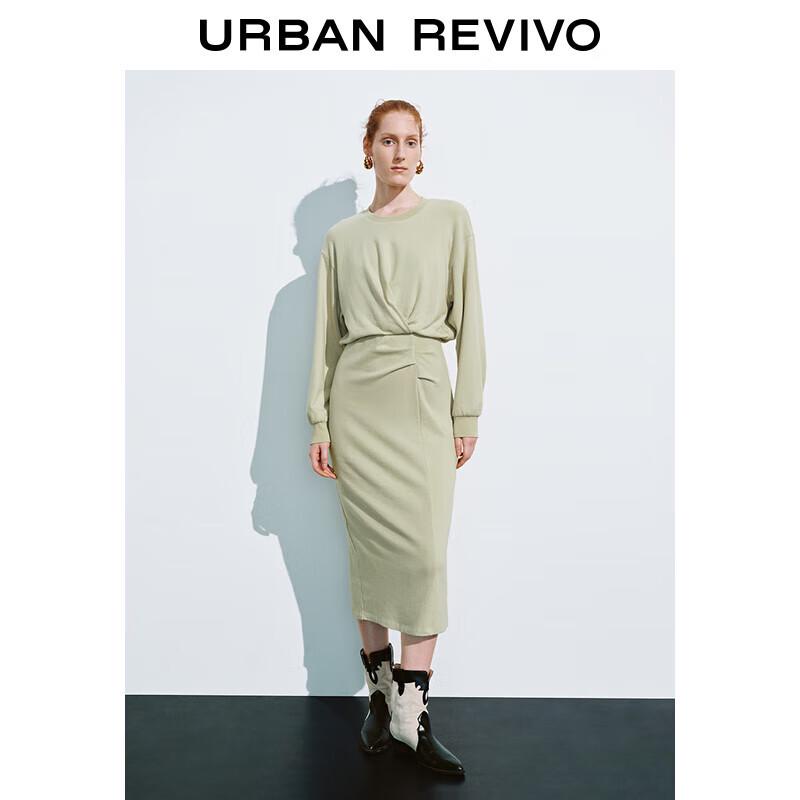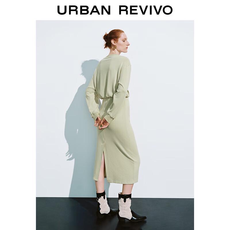 UR Women's Winter Pleated Back-Slit Long Sleeve Dress