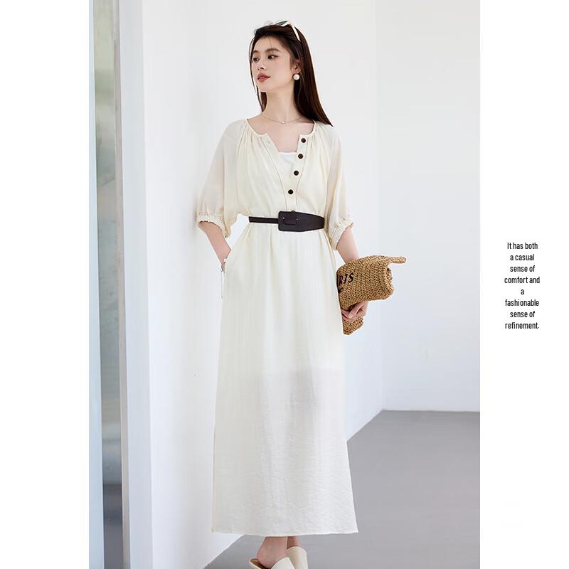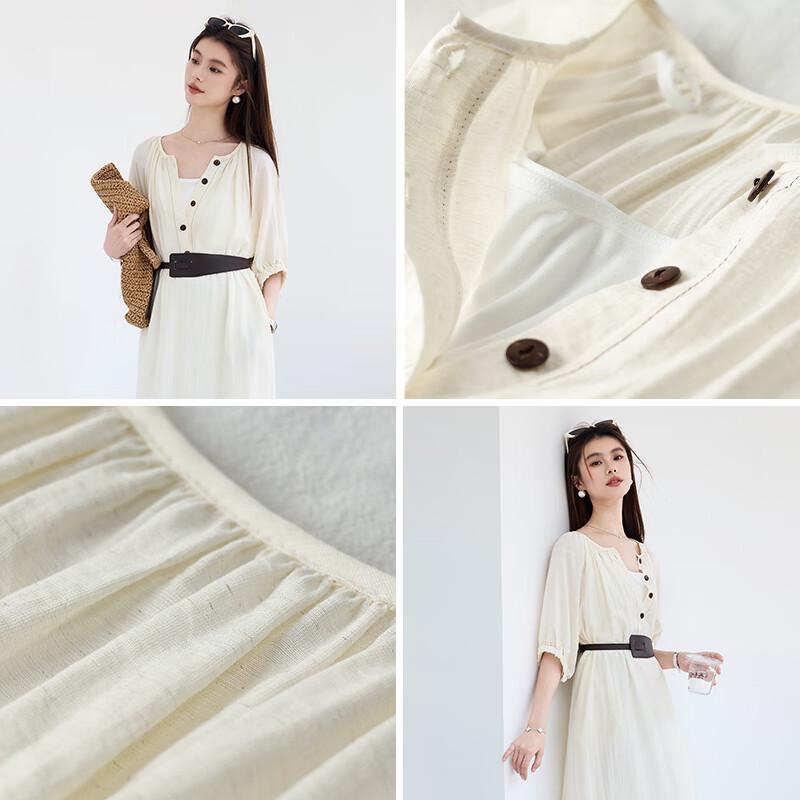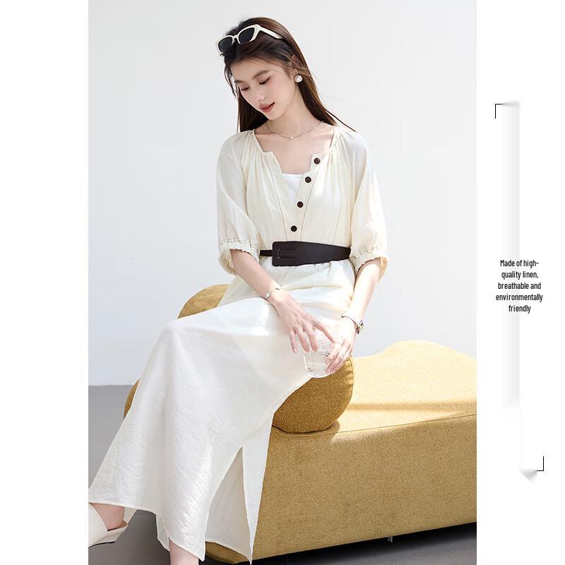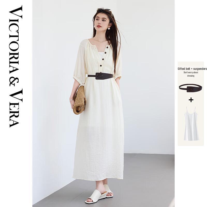 VICTORIA&VERA Женское хлопково-льняное миди-платье с V-образным вырезом и поясом