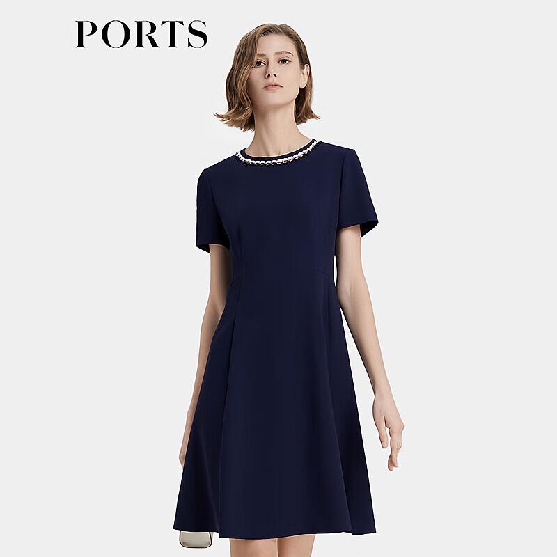 Ports Женское трикотажное платье темно-синего цвета с круглым вырезом — купить товар онлайн с бесплатной доставкой до всему миру!