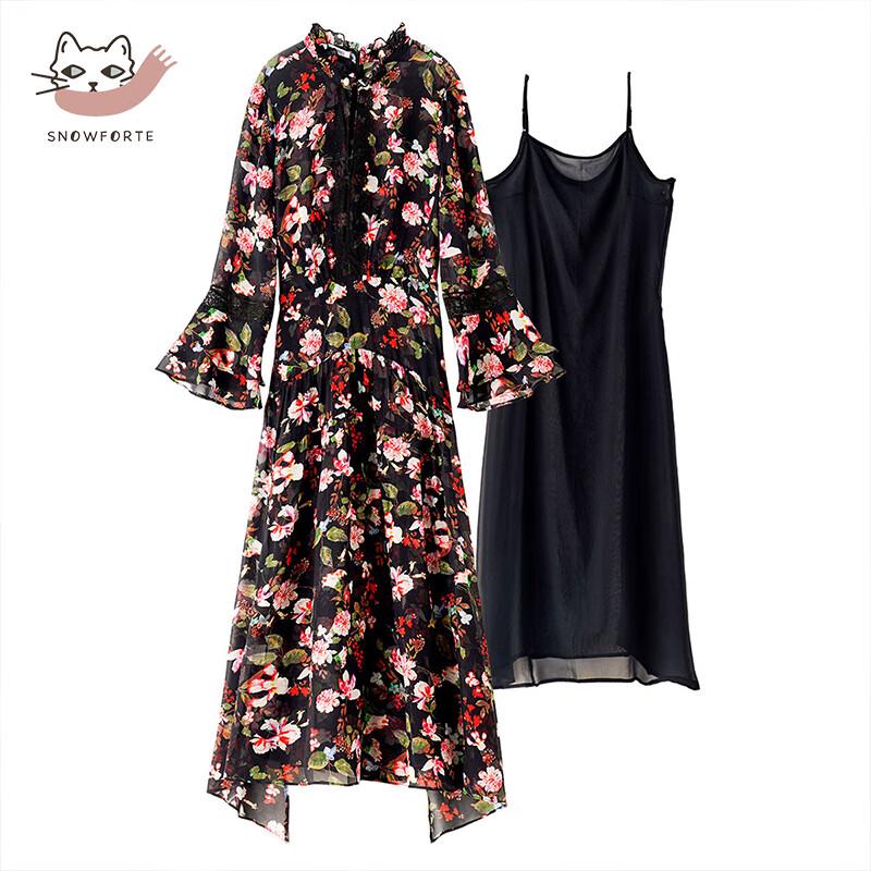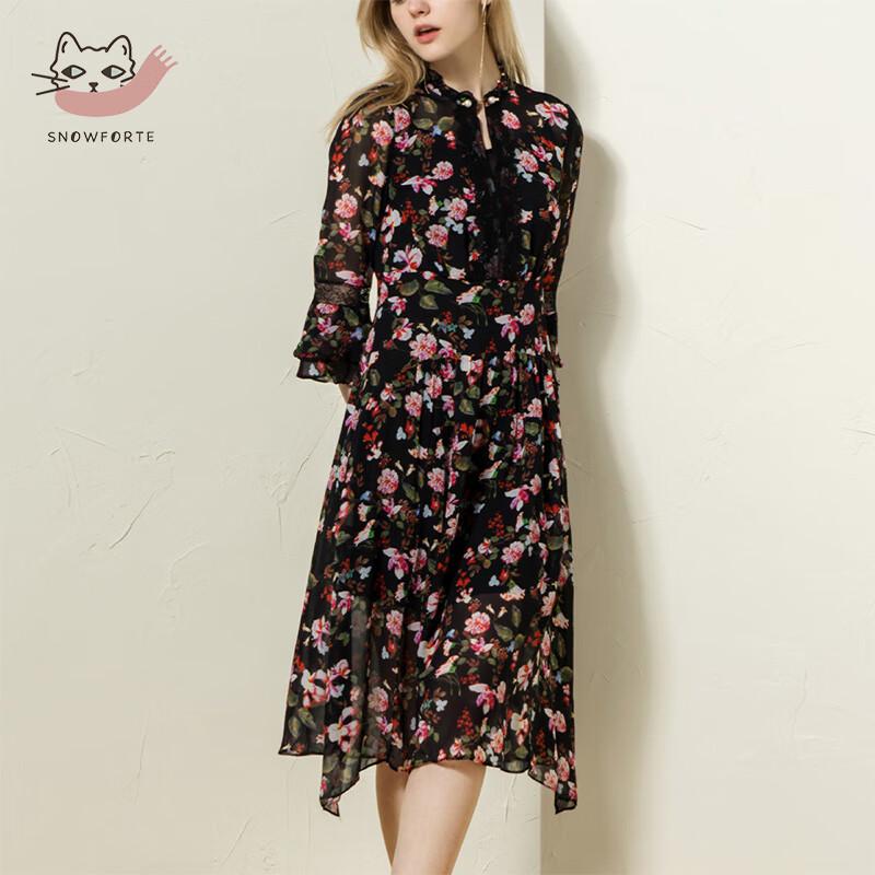 Sinoford Floral 3/4 Sleeve Loose Mulberry Silk Dress