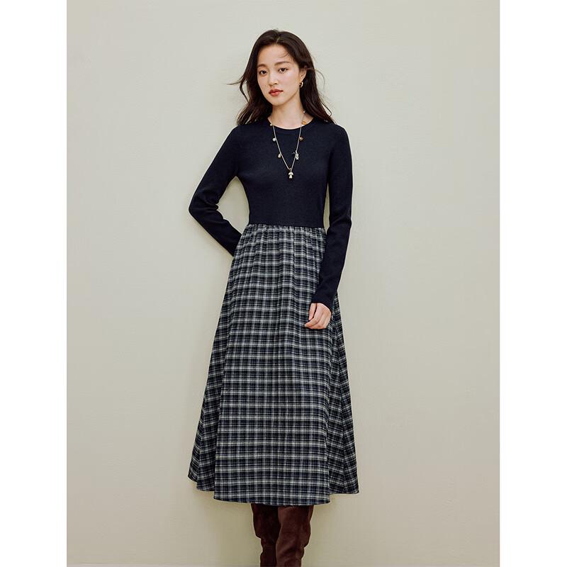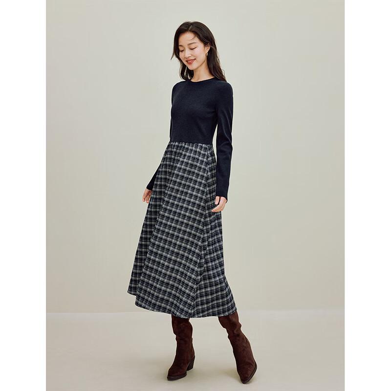 Inman Women's Patchwork Plaid A-Line Midi Dress