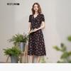 Французское ретро платье-халтер с цветочным принтом, V-образным вырезом и акцентом на талии