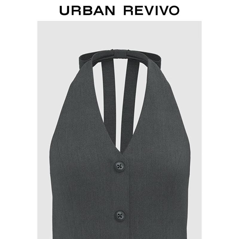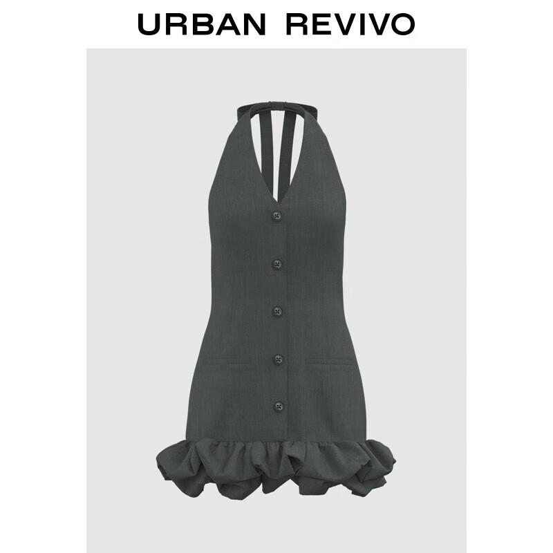 UR 2025 Осень Платье без рукавов со сборками, V-образным вырезом и А-силуэтом