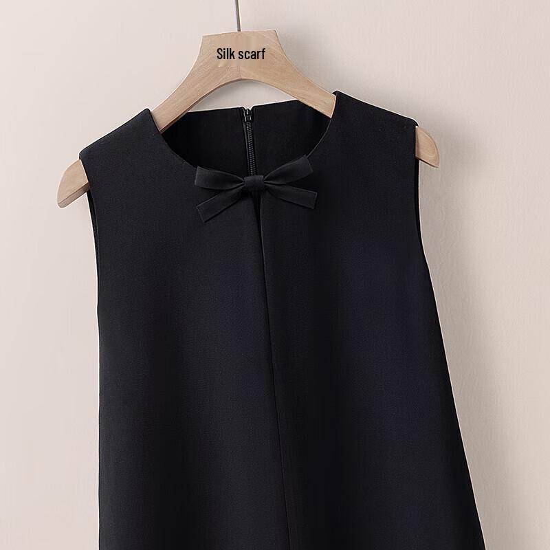 Sybilla Women's Elegant Sleeveless Round Neck Bow Short Dress