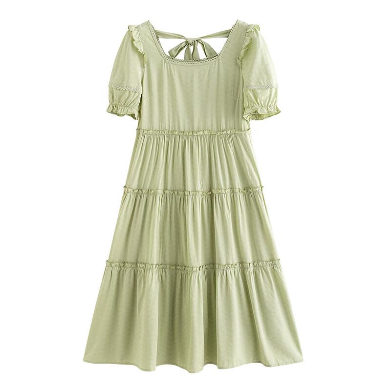 INMAN Пасторальное Свежее А-силуэтное Многоярусное Платье с Пышными Рукавами